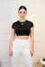 Crop top para mujer, cuello redondo, silueta ajustada, textura lisa, manga corta, una prenda infaltable en tu closet, úsala con looks de diferentes estilos.