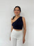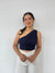 Top corto asimétrico con fruncido, una preda elegante que te hará sentir divina! Material: Poliéster 94% Elastano 6%. La modelo usa talla S.