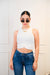 Top sin mangas, corto, con fruncido en el centro, ideal para un look relajadoMaterial: Poliéster 100%. La modelo usa talla S.