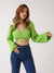 Top corto, escote profundo, manga larga y abombada, con tirantes.Material: Poliéster 96% Spandex 4%. La modelo usa talla S.